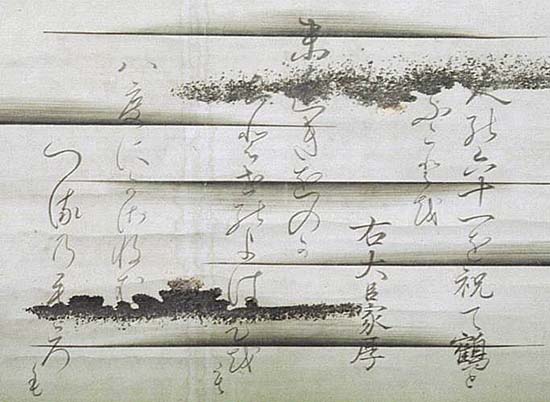 「右大臣家厚」の署名が有る。花山院家厚は京の人で、愛徳の子で花山院i家第二十