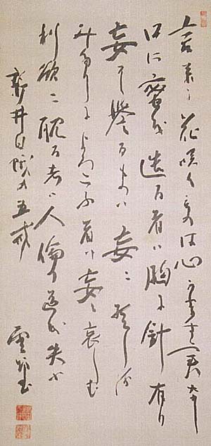 絹本肉筆・・縦110cm、横42cm
