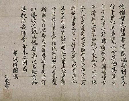 「元成書」の下に、陰刻「那波元成」の落款が押されている。那波木庵