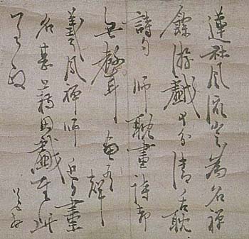 紙本肉筆・・縦28.7cm、横21.7cm 「道拝」の署名が有る。石田無得は秋田の人で、名は道 、字は成雅・子道、通称は巳之助・惣助、号を無得・融 齋・鐵涯・集虚・梧桐・梧堂・友道・青龍などと称し、幼時 より詩書を善くし、初め来藩していた国学者で歌人であ る津村ソウ庵に学び、ソウ庵に伴われて十七歳で江戸 に出て管茶山に師事し、佐藤一斎・伊沢蘭軒・狩谷ヤ齋 ・太田南畝・蠣崎波響ら、当時の一流文人や儒者と交流 し、家督を継ぐため帰郷して郷里で詩書会などを開き、 藩の文運発展に寄与した儒者である。彼は、詩書画に 渉って巧みな文人儒者であるが、その中でも特に書は 優れており、淡墨を駆使した行草の連綿体に特徴的な 書風を示す能書家で、江戸に永住していれば、米庵や 海屋らと名を馳せたであろうことは疑い無いと言われて いる。明治の書家日下部鳴鶴や比田井天来らも、無得 の書を激賞している。尚、森鴎外の『伊沢蘭軒』には、 無得が巳之助・惣助の名で登場している。 |