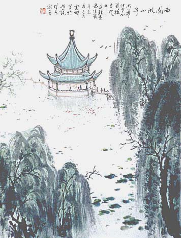 葉雲畊、西園湖心亭圖(現代、AD1991)