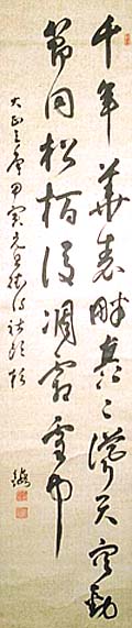 絹本肉筆・・縦146cm、横33cm
