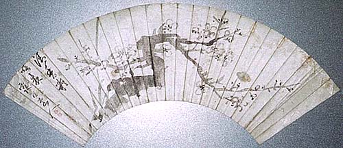 靄崖高久徴、扇面梅圖併行書五字讃(江戸時代、AD1796〜1843)