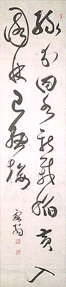 霞外小山朝孺、草書十四字(江戸時代、AD1785〜1864)