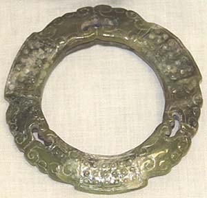 新灰青玉倣古卷雲文雙虎形環(現代)