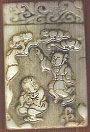 古白玉梅花唐子文子岡款方形珮(清朝時代)