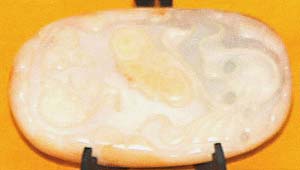 玉質はそれほどでは無いが、蓮花雙魚紋様を