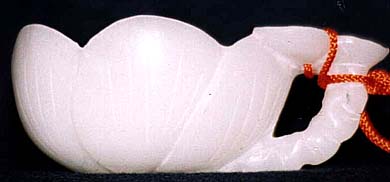 清朝時代の白玉執手碗である。上質の白玉であるが、何故か