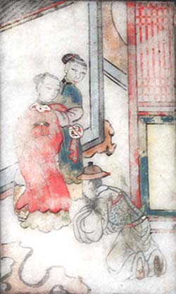 白玉の上に彩色で宮中の様子が描かれ
