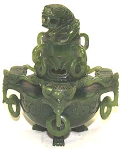 古碧(緑)玉三獸足四遊環耳獅子紐小薫爐(清朝時代)