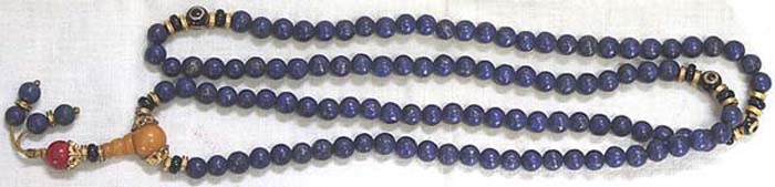 20世紀末から今世紀にかけて作られたもので、青金石を108個の珠に加工したもので、青金石とはラピス