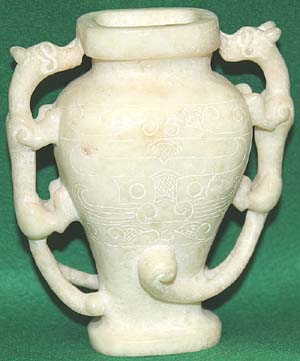 舊白玉饕餮刻文雨龍耳小瓶(民國時代)