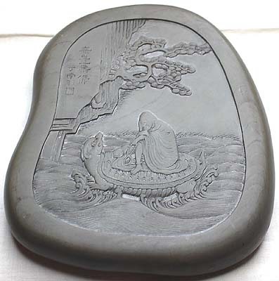 | c21.5cmA‰¡19cmAŒú‚³2.5cm ‘“ŠDF‚Ìû΂ÅAŒÃ‚¢洮‰Í΂ɂ͂©—l‚ÈF’²‚ªŒ©‚ç‚ê‚éBã•”‚ÉM—V–ä—l‚ª’¤‚ç‚ê‚Ä‚¢‚éB”w–ʂɂÍA–¾’©‚̉æl‚Ål•¨ ‰æ‚É—D‚ꂽ’š‰_–Q‚Ì–³—Êšæ˜Å‚ª‚³‚ê‚Ä‚¢‚邪A—ŽŠ¼‚ÍŽš‚Ì’š“ì‰H‚Å‚ ‚éBŒ»Ý‚Å‚ÍA洮‰Í΂͕ʂ̎R‚©‚çÌ΂³‚ê‚Ä‚¨ ‚èAÎF‚ÍŠDûF‚ðŠî’²‚Æ‚·‚éB |