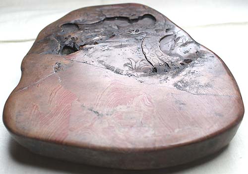のが特徴である。上部に松樹紋様を刻しただけで、縁の無い板硯に仕立てた