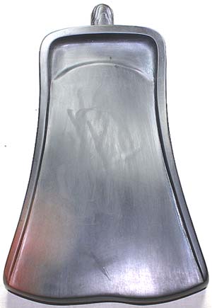 | 縦23cm、横13.5cm、厚さ2.3cm 鐘形に形作られた醤紅色の澄泥硯で、山東省 泗水県柘沟の所謂魯柘澄泥陶硯である。魯柘 澄泥陶硯の色調は多様で、黒色・灰色・醤紅色 等々である。 本品は、現在一般的に流布している江蘇省蘇州 付近の霊巌山産出の石で、所謂蘇州澄泥石硯 (正確には、霊巌山石硯と言う可きであろう)と称 する石硯ではなく、泥を固めて燃焼して作った陶 硯である。 澄泥陶硯には、代表的な産地が三カ所有り、山 西省の絳州澄泥陶硯・河南省の虢州澄泥陶硯・ 山東省の魯柘澄泥陶硯である。 尚、陶硯としては、江蘇省宜興の紫紅砂を用い た紫砂陶硯も有る。 |