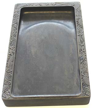 左右と上縁部分に龍紋様を刻した、長方硯であ