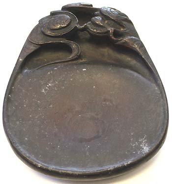 上縁部分に龍紋様が刻された楕円硯である。