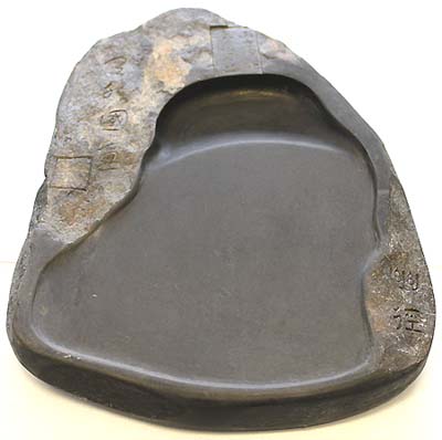 石皮を硯縁に利用した楕円の天然硯である。