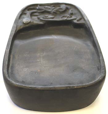 上縁部分に雲龍紋様が刻された楕円硯である。