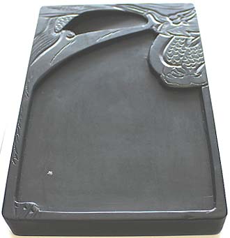 上縁部分に龍紋様を刻した長方硯である。