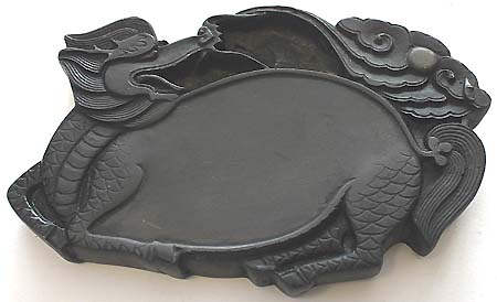 麒麟の形に造形した硯で、尻尾の部分に眼を設けて、一見端渓の様