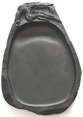 上縁部分に松樹紋様が刻された天然硯で
