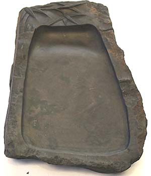 上縁部分に竹葉紋様を刻した天然硯である。