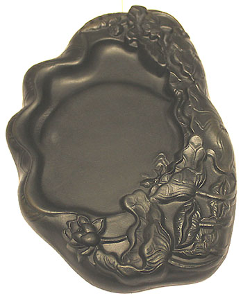 本品は、蓮池の形に造形した硯である。