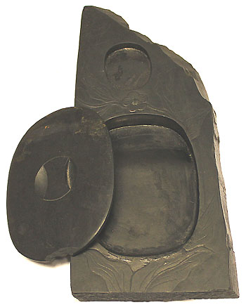 咸鍾北道鍾城石有蓋花卉文天然二面硯
