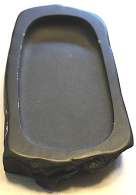 粘板岩石で、色調は黒を基本とし、赤褐色