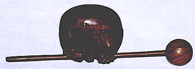 手の平に乗る大きさの木魚で、鳳凰と龍の紋様が彫刻されて