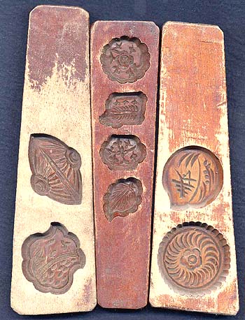 木製干菓子・月餅型枠三種T(民國時代)