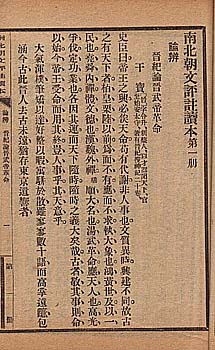 | ここに提示する四點は、上段右側が掃葉山房の『桃花扇』で、左側が文瑞樓の『『史通通釈』であり、下段の右側が錦章書局の『忠烈小五義』で、左側が文明書局の『南北朝文評註讀本』である。 |
