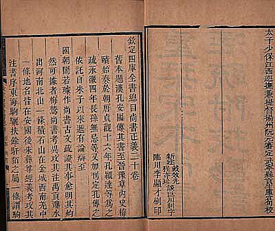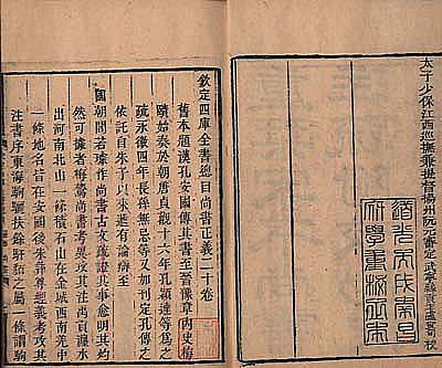 | ここに提示するのは、嘉慶20年刊本の十三経注疏『書經』と、その重刊本である道光6年の『書經』とであるが、嘉慶刊本には有った刻字・印刷者の名前が、道光重刊本では削り取られ、代わりに道光重刊であることを示す刊記が入れられている。 |