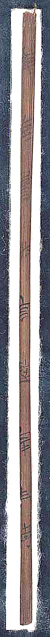| 竹簡とは、文字を書き写す対象の材料として絹布や紙が使用され出す以前の材料であり、竹箆を薄く削ったものが竹簡であり、木箆を薄く削ったものが木牘である。その長さや幅は必ずしも一様ではなく、長い物・短い物・広い物・狭い物・厚い物・薄い物等々千差万別であるが、一般的にはほぼ長さは数十cm前後で幅も1cm前後である。近年考古学の発達に因り、中国各地から戦国秦漢時代の竹簡が多量に発見され、それに基づく学問研究も日進月歩の感が有る。
