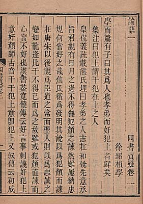| 四書とは、『論語』『孟子』『大学』『中庸』の四種類の書籍を一括した名称である。元来『大学』と『中庸』とは『礼記』の中の各篇に過ぎなかったのであるが、南宋に至り朱熹が朱子学(宋学)を確立させ、道統(学統)を重んじてこの四種類の書籍に註を付けて解釈(『四書集註』)してから一躍重視されだし、元に至って科挙に朱子学が採用されると、四書に関する注釈はいよいよ拍車を増し、『某某四書』とか『四書某某』なる本が陸続として作られ出し、清朝に至ってはその数を枚挙するに暇が無い程である。この事は我が国に於ても、朱子学が江戸時代の御用学となった事に因りほぼ同様の傾向を示し、当時の漢学者は四書に関する注釈書を多く作っている。 |