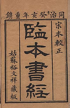 | ここに提示する監本は、まさに書肆の「売らんかな」に基づく同治2年重刊の『宋本較正監本尚書』であるが、左側が封面部分であり右側が巻一部分である。 |