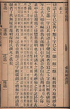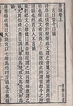 | 音韻書とは、言うまでもなく音韻に関する著作のことであり、学問上の言語学的基礎である小学(文字学・音韻学・訓詁学)の中の一分野である。漢字に於ける歴史的な音韻構造の変化を重視し、古音の解明に依拠した経書解釈を試み、清朝考証学に絶大な影響を与えたのが顧炎武であろう。因って音韻書は、清朝に多く著作されることになる。 |