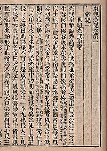 | ここに提示する掃葉山房本は、乾隆60年に武英殿聚珍版に依拠して重刊した『東観漢記』である。『東観漢記』は原本が既に元代に散逸し、乾隆年刊に『四庫全書』を制作するに当たり、『永楽大典』等から断片を拾い集めて編集したものである。故に現在見ることの出来るまともな『東観漢記』の版本は、乾隆39年の原装原刊聚珍版『東観漢記』と言うことになる。しかしこの原本は、現在では殆どお目にかかれない。一方本来木活字を組み合わせた聚珍版を、整版として覆刊した聚珍版叢書なる本は多々存在し、例えば、乾隆年刊の浙江覆刊本・道光年刊の福建逓修本・同治年刊の江西覆刊本・光緒年刊の広東広雅書局覆刊本等がそれである。所がこの中で『東観漢記』を含んでいるのは、道光年刊の福建逓修本だけである。とすれば掃葉山房の乾隆60年本はそれより古く、原刊聚珍版に次ぐ版本と言うことになるのである。尚、聚珍版については、〜聚珍本と袖珍本〜を参照。 |