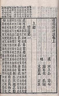 | ここに提示する「十子全書」本(嘉慶甲子重鐫本)は、共に明人の註を伴っている『老子』と『管子』とである。尚、上段が明末の花齋蔵版に依拠した『管子』で、下段が河上公本『老子』である。 |