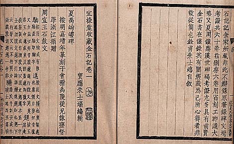 | ここに提示する聚珍(活字)版は、上段が1870年代末の光緒初期に蒼頡篇校証(光緒五年)等の書籍を出版した、蘇州文學山房の「經典釋詞」である。版心下部の右側に文學山房、左側に聚珍板印とあるため、木活字本と思いこみ易いが、この本は、鉛活字の聚珍版である。しかし下段は、清末西冷印社版行の朱士端著「宜録堂収蔵金石記」で、版心下部の右側に西冷印社聚珍板、左側に山陰呉氏遯庵金石叢書とあるが如く、字体の美しい木活字を使用した近世木活字本である。尚、聚珍本に関しては、NO8、NO83をご参照下さい。 |
