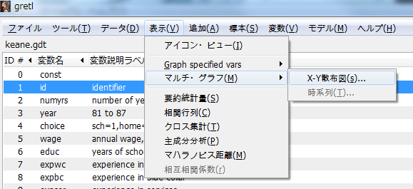 そのような場合には,「表示>マルチグラフ>xy散布図」を