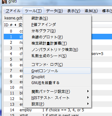 「ツール>gretlコンソール」で開く.