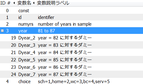 year==82,year==83,...,year==87に応じて一気にダミー変数を作